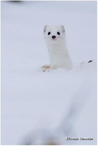 Hermine en hiver à la sortie de son trou